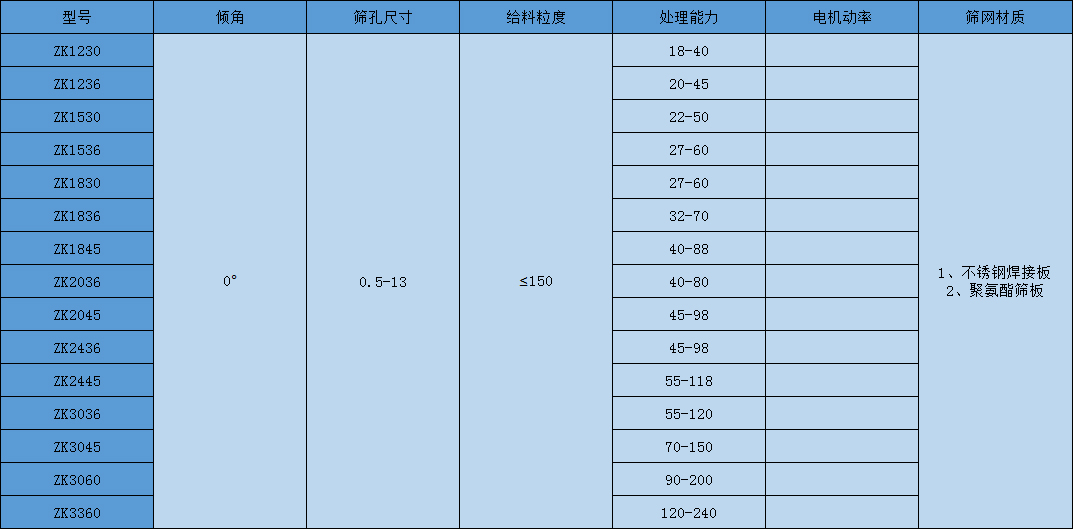 ZK系列直線振動篩適用于煤炭、化工、建材等不同行業的需要,廣泛適用于物料的脫水、脫泥脫介作業以及產品的分級作業。